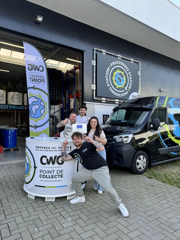 Clean Water Global swoops in, grabs that paint rinse water, and hauls it to a collection spot in Belgium or the Netherlands.