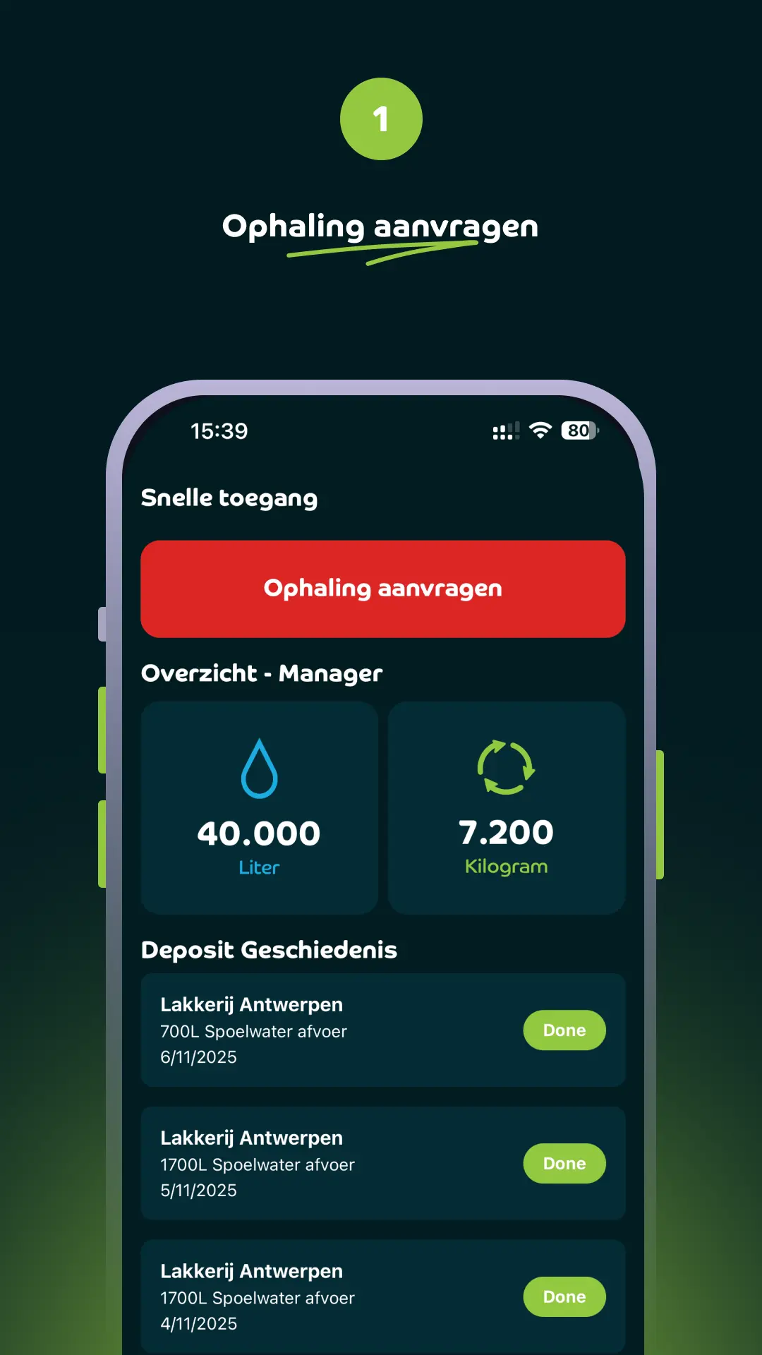 Every batch is tracked. Every drop, analyzed. Through your digital CWG portal, you get the hard data, water volumes, contamination levels, recovery rates, and more. Want proof? You've got it. Digital waste certificates are issued, so everything stays transparent, traceable, and under control.
