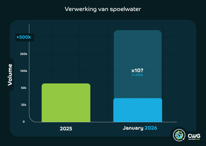That momentum is accelerating: in January alone, 35,600 liters of rinse water were processed.