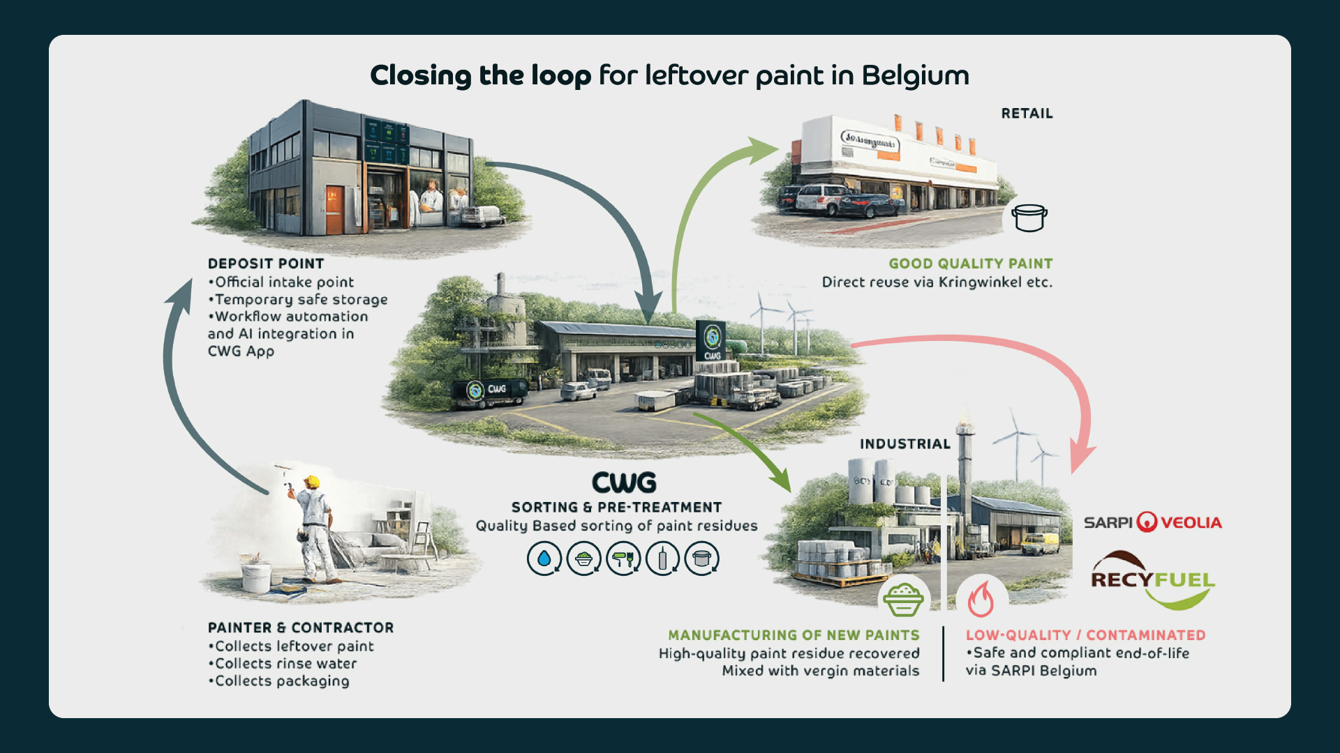 Where relevant, CWG expands the environmental permits to process solvent-based paint, ensuring continuity for professionals while remaining aligned with our commitment to safe handling and circular progress.