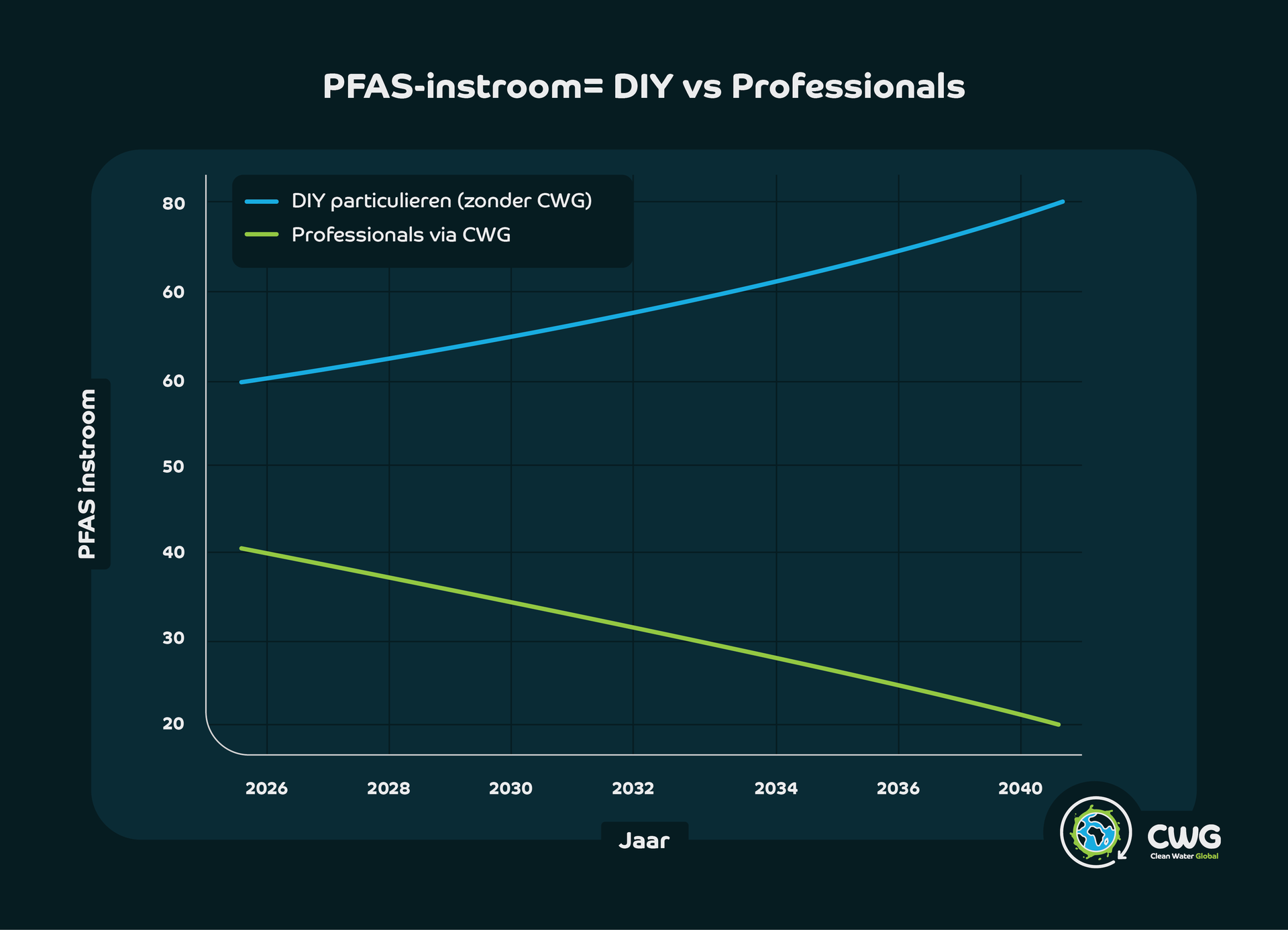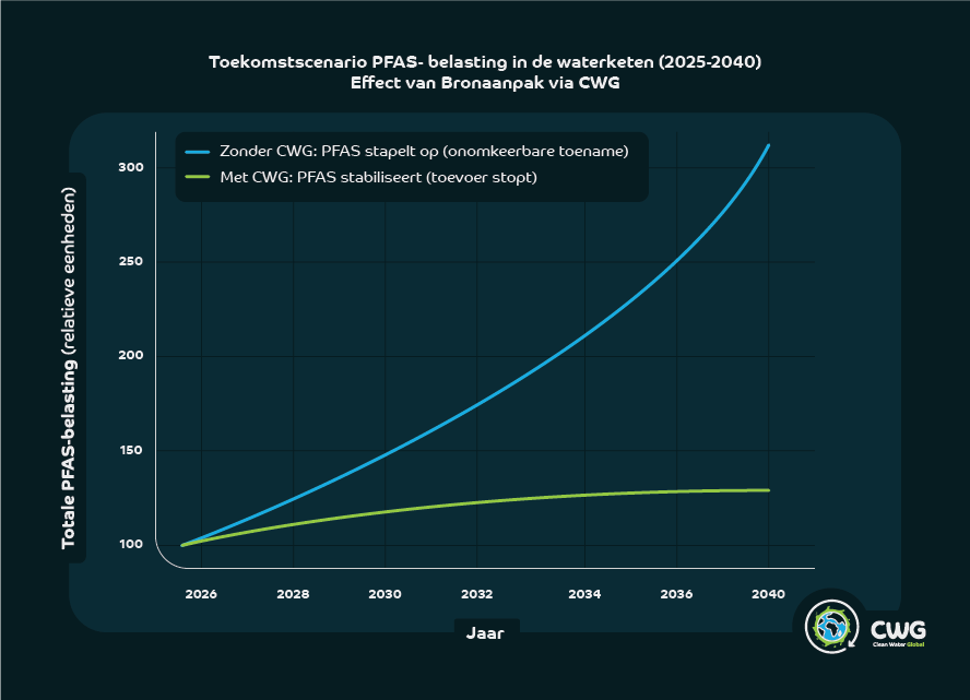 You can see this reflected in our graphs: without adapted processing, PFAS load continues to rise; with proper collection and processing via CWG, that curve becomes significantly flatter.